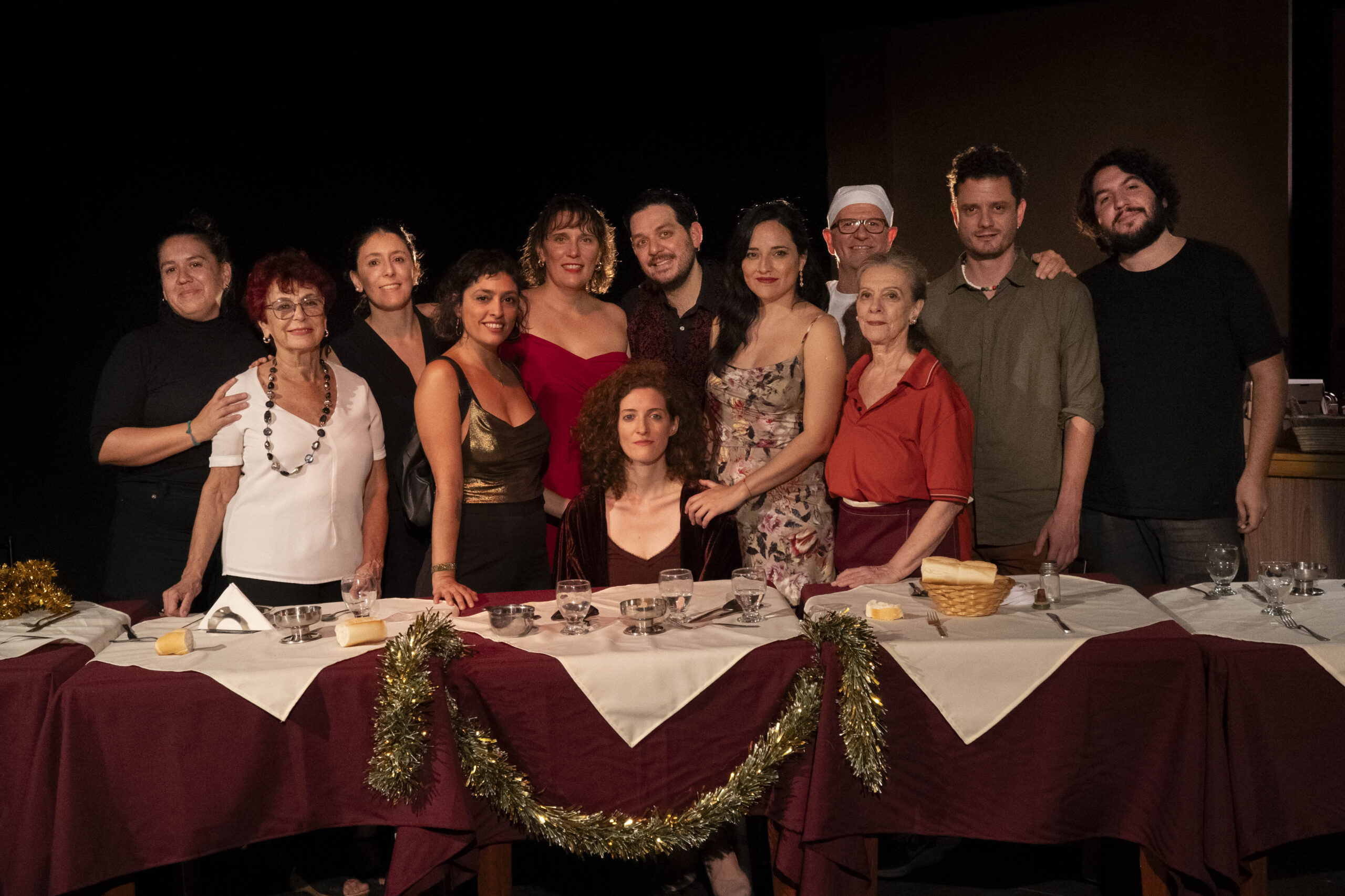 La obra transcurre en El Deleite, un restaurant porteño tradicional en decadencia ubicado en Villa Crespo. Es Nochebuena y hay una propuesta especial para los comensales: un menú navideño con Cena show. La familia que trabaja y sostiene abierto el restaurant está compuesta por Liliana -madre y encargada-, Julio -padre cocinero- y sus dos hijas/os: Cora -camarera- y Manuel -delivery y performer. En El Deleite hay otras tres mesas. En la primera, están Helena -una artista que se encuentra con una parálisis en sus manos-, Ayelén -su acompañante terapéutica- y su hija Camila, quien se reencuentra esta noche con su madre, ya que vive en París. En la otra mesa, están Lucia y Julián, una pareja que hace un mes se rompió y se reencuentra para volver a despedirse, y Verónica, actriz misteriosa que viene a El Deleite sola a, justamente, evitar la soledad.