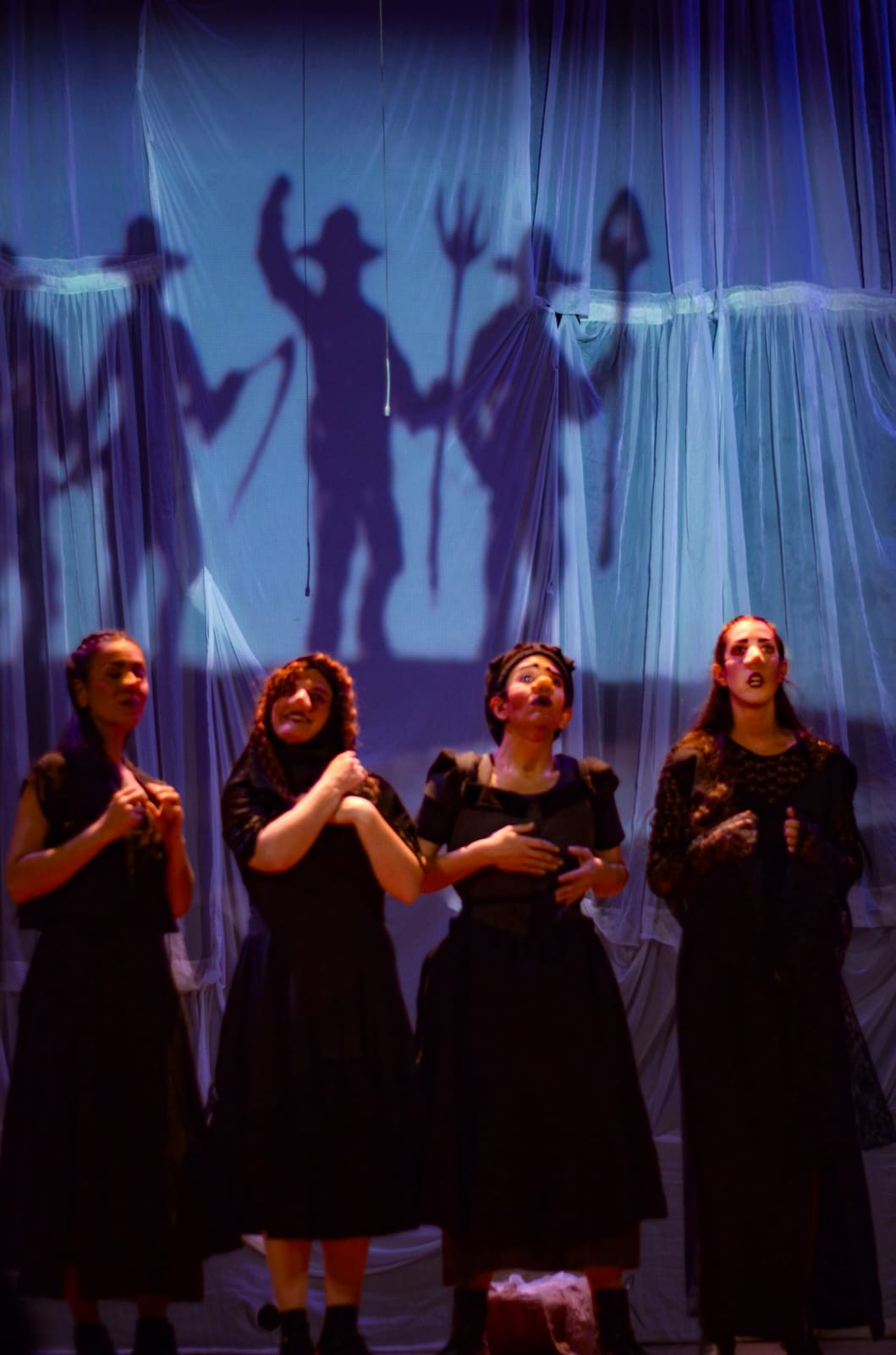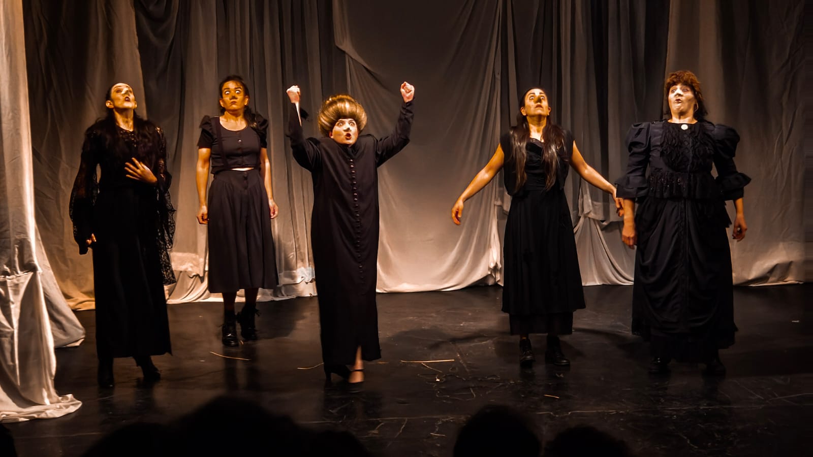 Bernarda la de la casa, la adaptación de la obra clásica de Federico García Lorca, está en manos y lenguas sensibles que comprenden los sometimientos de esas mujeres, como si ellas, con su profesión de cómicas, también reconocieran los mandatos de otra madre castradora que, a veces, suele ser la imposición del buen teatro. Una manada de bufonas en estado hilarante conmueve a través de la profundidad del poeta y con una payasería singular entendida en clave feminista de estos tiempos. La obra se termina de desplegar de manera estética con las proyecciones de dibujos hechos con arena, huellas efímeras que intentan horadar esa casa. Y, muy acertada la transmutación de las narices coloradas en narices grotescas junto a los pelucones que les permiten explorar la tragedia.